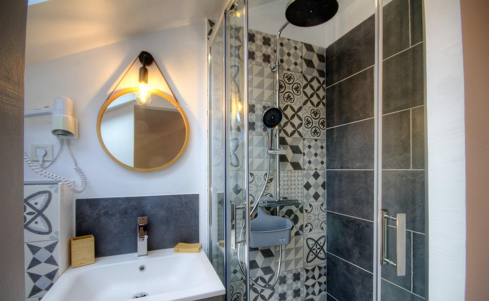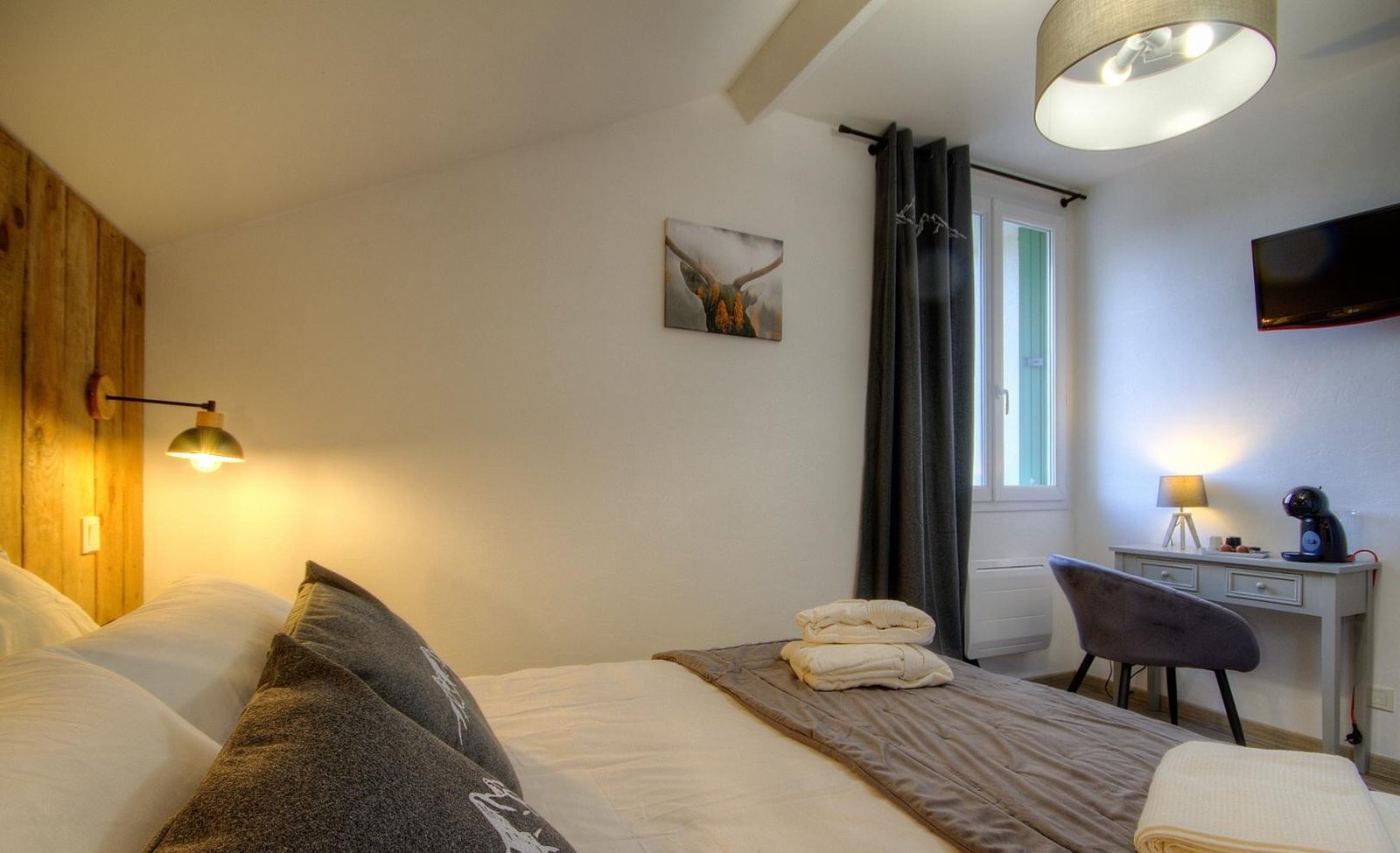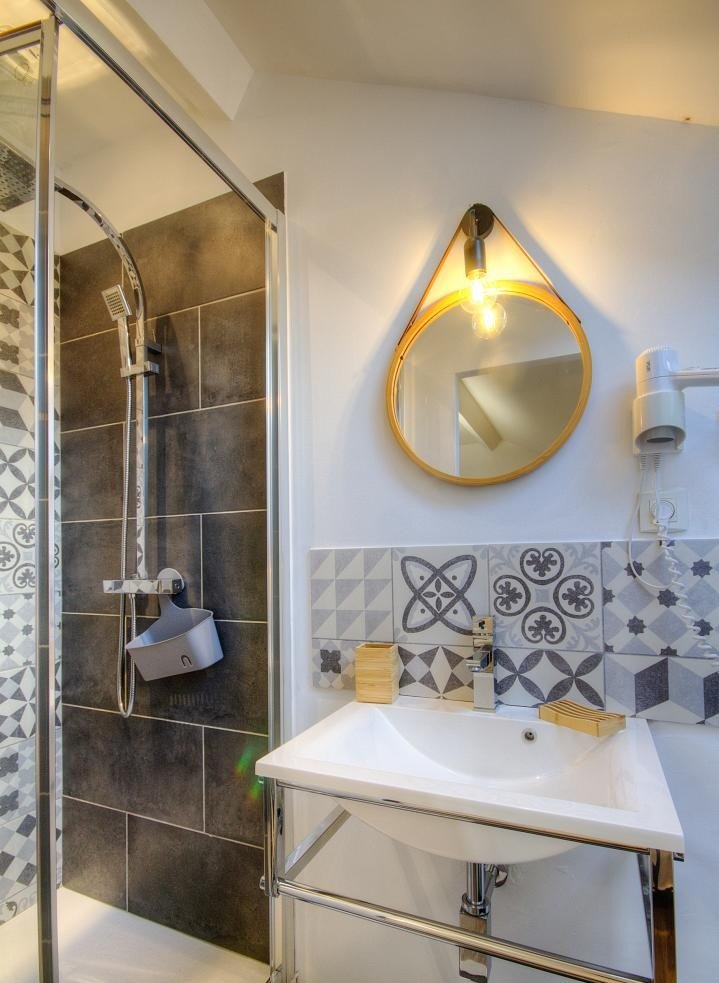 – Télévision – Wi-Fi – Salle d’eau/WC mansardée de 3.3 m² – Sèche-cheveux – Sèche-serviettes